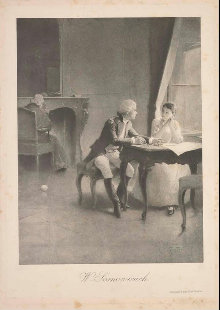 Учить дочерей французского языка магнат Юзеф Сосновский, по рекомендации польского короля Станислава Августа, пригласил Тадеуша Костюшко. У Людвики и Тадеуша завязался любовный роман. Правильнее сказать – продолжился, ведь молодые люди знали друг друга уже давно.